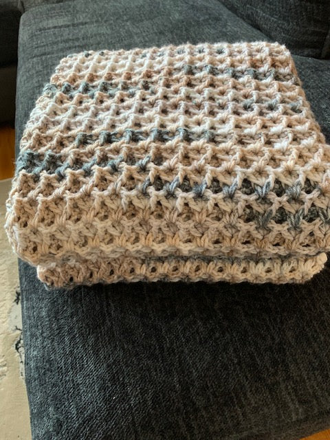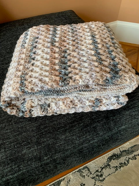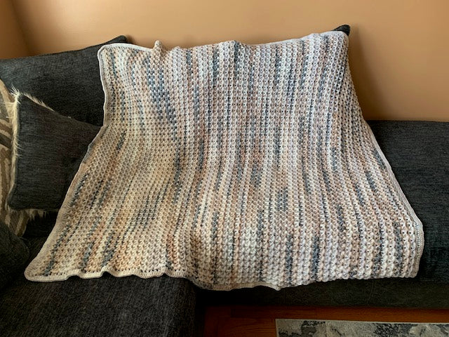Esta manta de crochet hecha a mano está ingeniosamente elaborada con una puntada especial única, la puntada reversible en "V". Con unas medidas de 50" x 55", ofrece calidez robusta y el mismo estilo elegante en ambos lados.